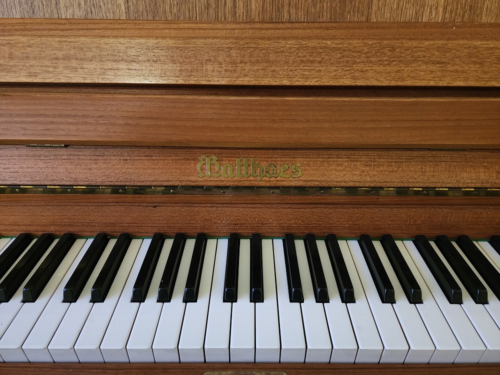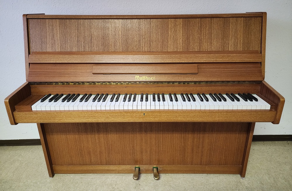 Schönes Matthaes-Klavier aus der Stuttgarter Klavierfabrik mit schönem, vollen Klang, gut erhaltenes Teakholz-Furnier, technisch überholt und gewartet