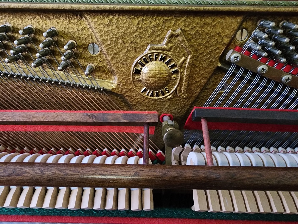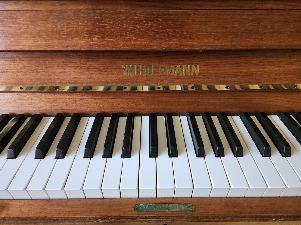 Klangstarkes Hoffmann-Klavier aus der Langlauer Klavierproduktion, technisch überholt und gewartet, Gehäuse mit leichten optischen Mängel